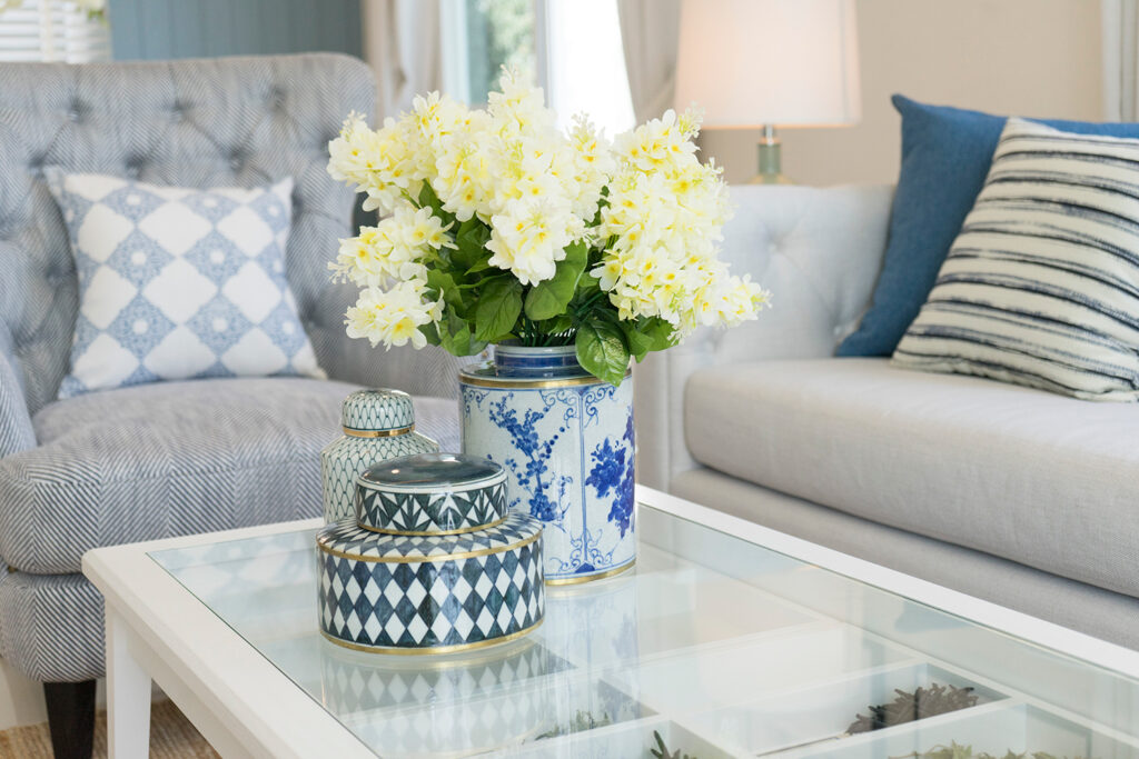 A sheer glass tabletop can stand alone on a wrought iron or wood base for a dramatic statement, or a gently tinted glass tabletop can be placed over an existing surface to minimize the appearance of flaws while drawing attention to the overall piece.