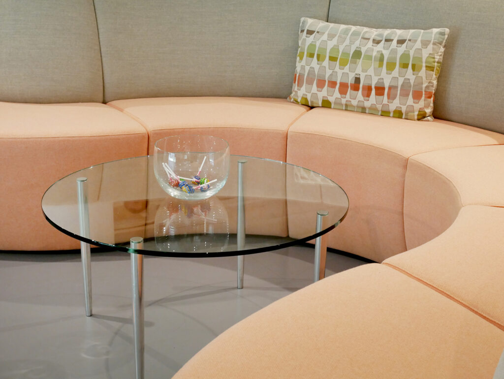 Our glass tabletops can be cut into many sizes and feature several edgework options. Choose from a quarter inch that we cut and seam in-house, or move up to half-inch heavy glass with polished or beveled edges. Rectangle, round, or oval, we can assist you with any size and shape, from that 15-foot x 4-foot dining table to a more petite end table. Tabletop glass is one of our specialties.